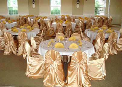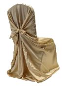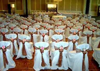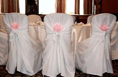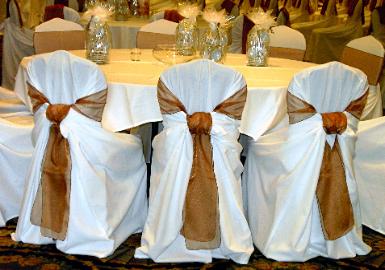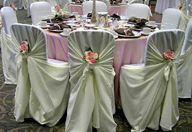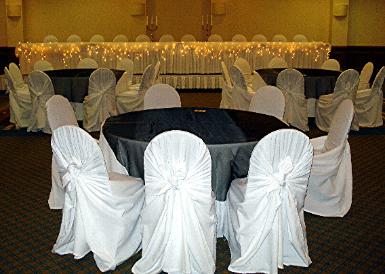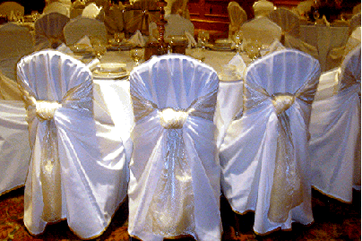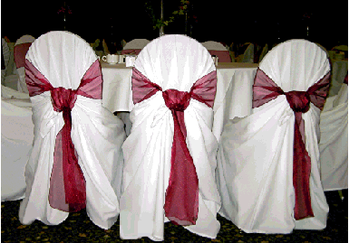 | White,Ivory,Silver,Black, Champagne, Gold, Plum,Purple, Red/Burgundy Color- Satin or Polyester Our European style of chair covers will fit every banquet hall type chair's. Even folding chairs. They are very elegant, in high quality satin or polyester fabric. We carry them in white,ivory,champagne,gold,black, silver, Plum, Purple, Red/Burgundy. Custom colors are available too. They can have silk flower's or a sash on the back or the most elegant option - PLAIN w/ tie on the back. Our chair covers are made of high quality materials, always freshly washed and pressed. |